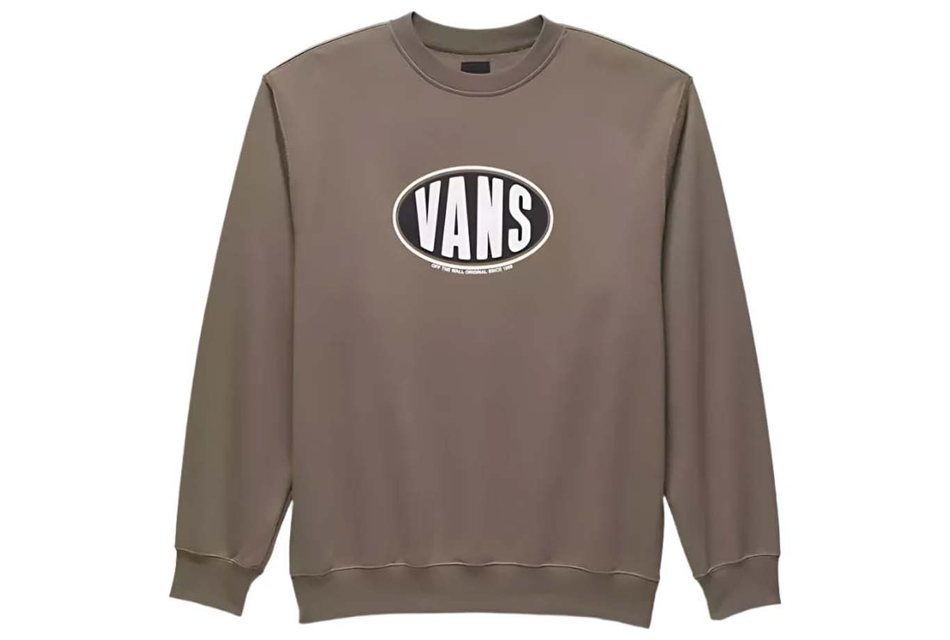 The Spray On Loose Crew Sweatshirt is a looser fit crewneck sweatshirt made with a comfortable cotton-blend fleece, featuring a bold screenprinted graphic of the Vans® logo on the chest.