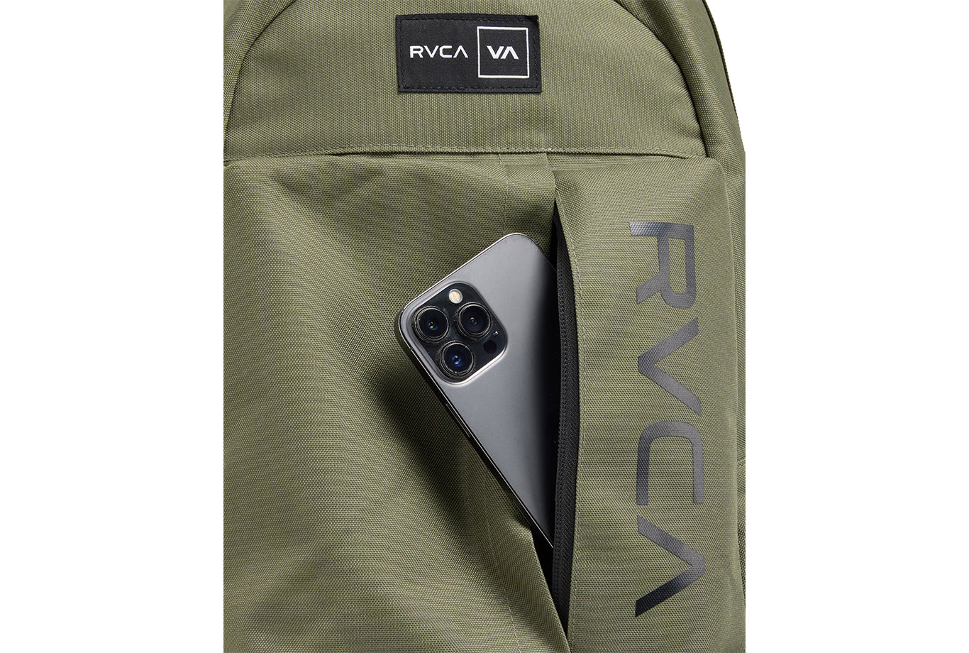 Get ready to conquer the day with RVCA's EDC Backpack. Made of durable materials, it features a spacious main compartment, convenient pockets, and bold RVCA branding.