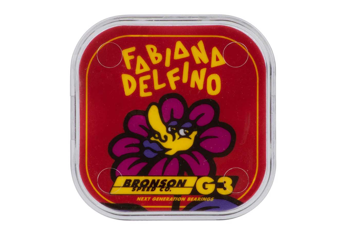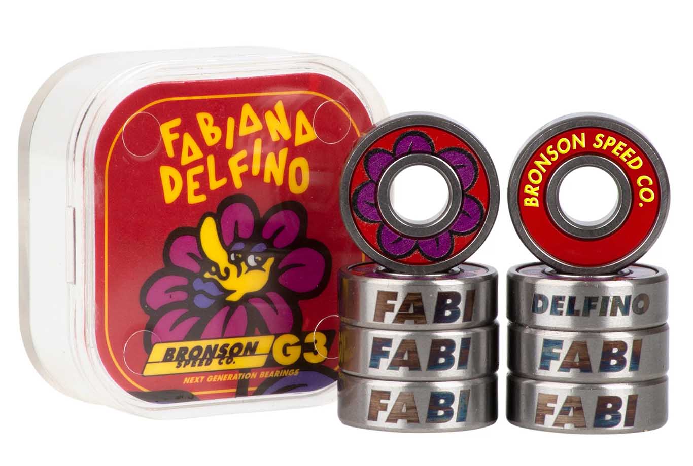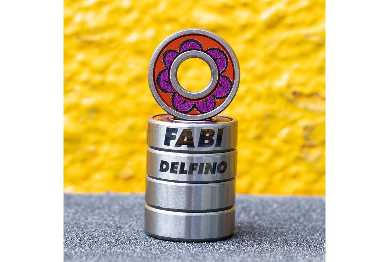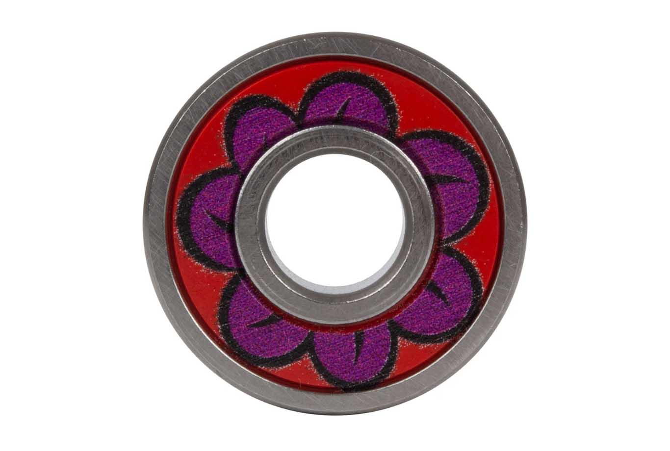 Bronson Speed Co Fabiana Delfino Pro G3 bearing featuring pro inspired flower graphic art by Yaia @yaiagift, printed with super durable ink, and 7 "Fabi" and 1 "Delfino" laser etched outside bearing races. Go fast, stay fast with Bronson bearings!