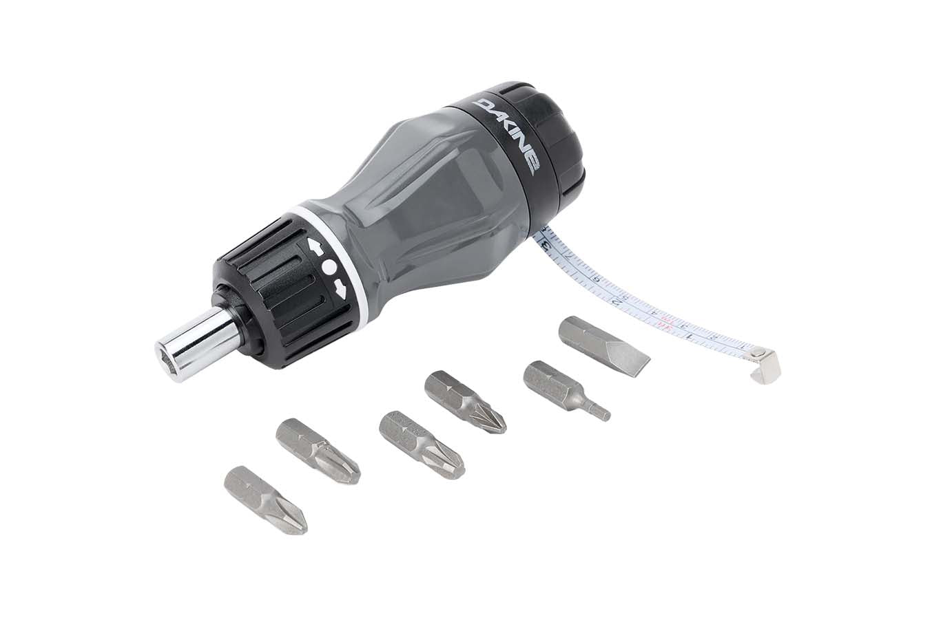 The Stance Driver is our most tricked-out driver tool. It comes with all the standard bits you'll need for your skis, snowboard, or surfboard, and the bidirectional adjustable ratcheting head makes quick work of any project. The retractable tape measure is always ready spring to help you set the perfect width on your bindings.