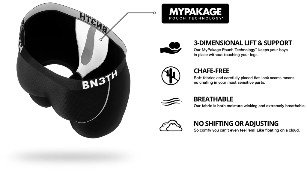 These luxury Boxer Briefs feature an ultra-soft, breathable, lightweight Tencel™ Modal that is sustainably sourced, guaranteed to stay smooth and keep you comfortably supported at all times. BN3TH's MyPakage Pouch Technology™ lifts & separates your boys, eliminating the need to shift or adjust.