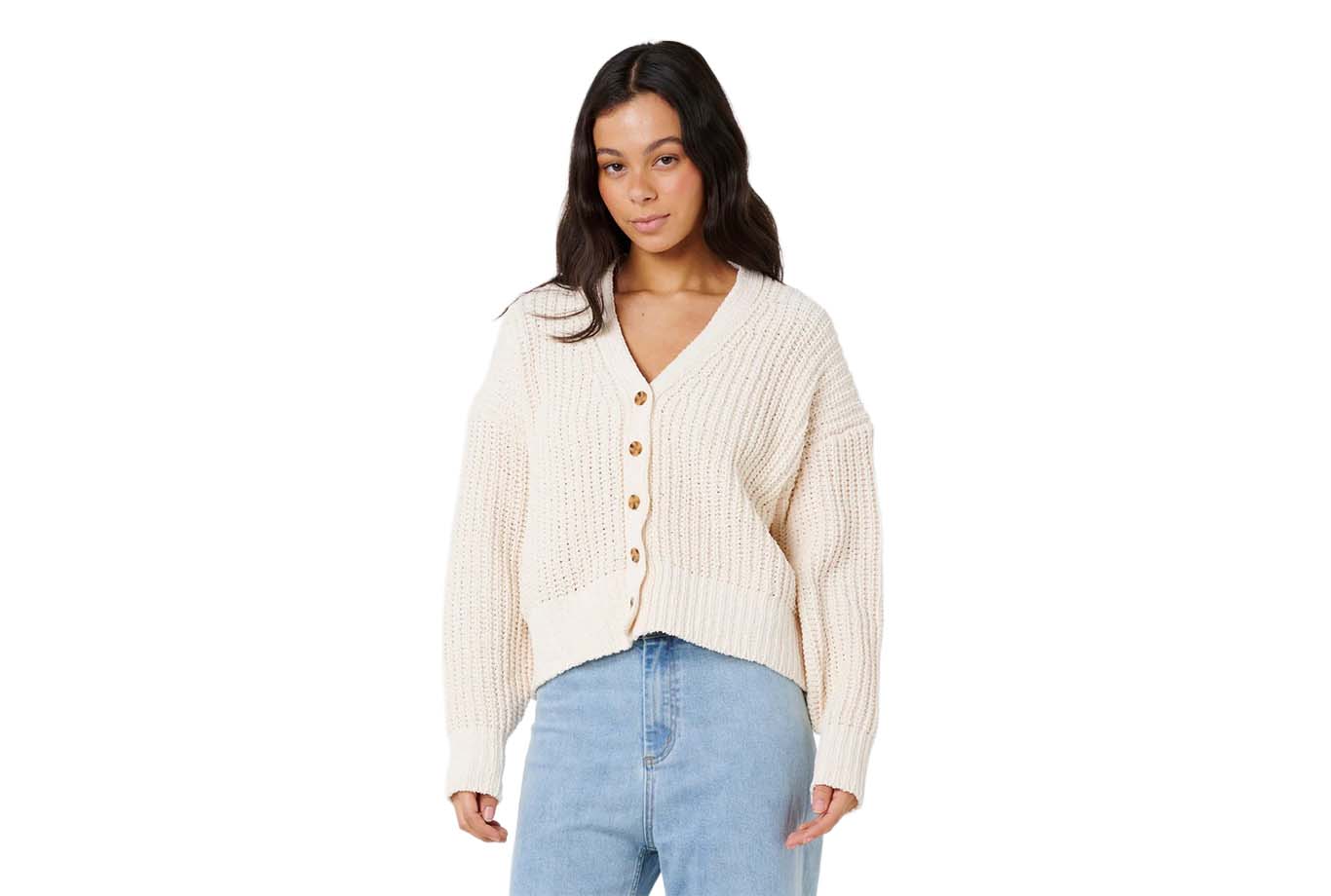 The Neon Isles Cardigan is your go-to layer for cooler nights and beach bonfire hangs. This relaxed-fit piece is made from a cotton-recycled poly blend, with texture knitting that adds a little extra style to your chill. The coconut button adds that perfect touch of laid-back surf charm, making it as easy to wear as a sunset surf session.