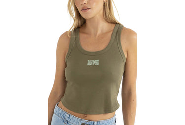 A soft ribbed tank with a flattering scoop neckline and a custom chest graphic for a touch of signature branding. Effortlessly lightweight, this piece is perfect for layering or wearing on its own through sun-drenched days.