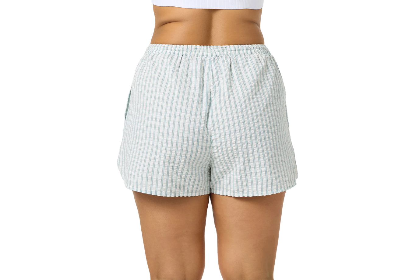 A casual short with a comfy elastic waist band, front tie, and pockets.