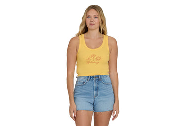 Soft as first light and just as easy, the Sun Palm Seashell Tank is the one you throw on without thinking. Made of a stretchy cotton knit in a mellow soft yellow, it hugs just enough without feeling tight. The clean scoop neck and sleeveless cut slide over bikinis, bralettes, whatever you’ve got on rotation, while the graphic brings a little palm-fringed daydream to your everyday jeans-and-cutoffs situation. Wear it from slow mornings to sandy sunsets and let it do the effortless thing for you. Featured here in the Soft Yellow colorway.