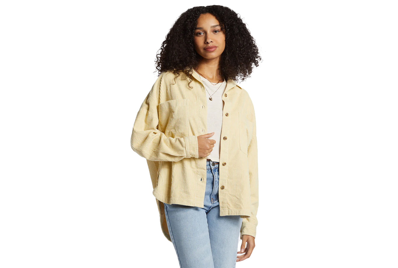 The Stoked On You long-sleeve button-down shirt is a perfect layer for cool summer nights. The oversized fit and cotton slub crosshatch fabric give it a laidback look, while patch pockets and a button closure keep it practical.