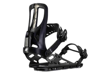 Based off a tried and true splitboard baseplate, this chassis works with a splitboard puck-mount system and features an easy-to-use rail and hook system for the interchange between walk and ride modes.