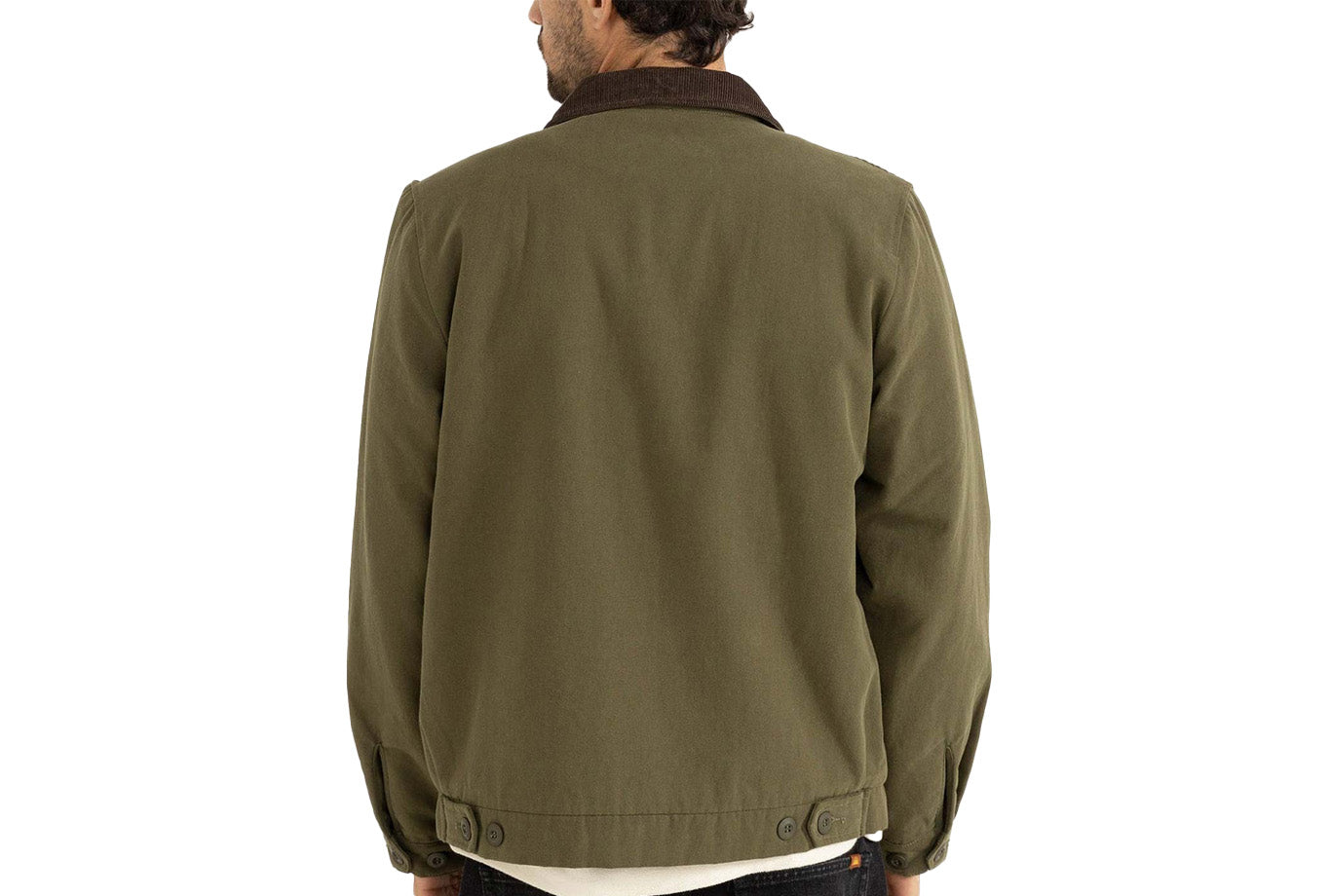 The James Jacket in Olive delivers a rugged yet refined look. A low-pile sherpa lining and contrasting corduroy collar offer a vintage-inspired aesthetic, complemented by a metal 2-way zipper. Practical details like hand welt pockets, internal patch pockets, and adjustable cuffs and waist tabs make this piece ideal for transitional weather.