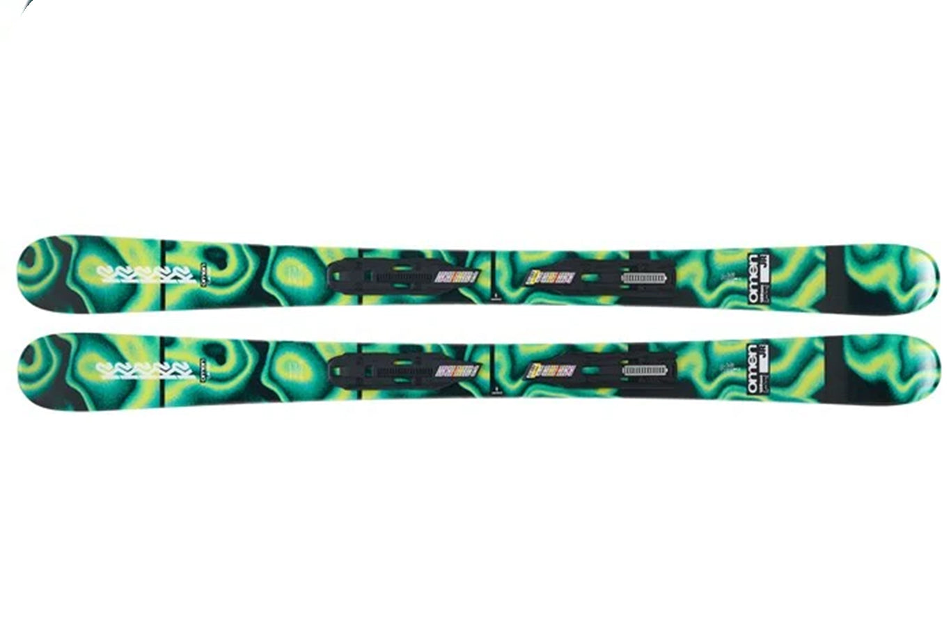 Kids and jumps seem to mutually attract each other, and the right tool for the grom with freestyle aspirations is the K2 Omen Jr Flat Skis. Full twin profile, tough Duracap construction, and a topsheet straight off the adult Omen adds up to a ton of fun.