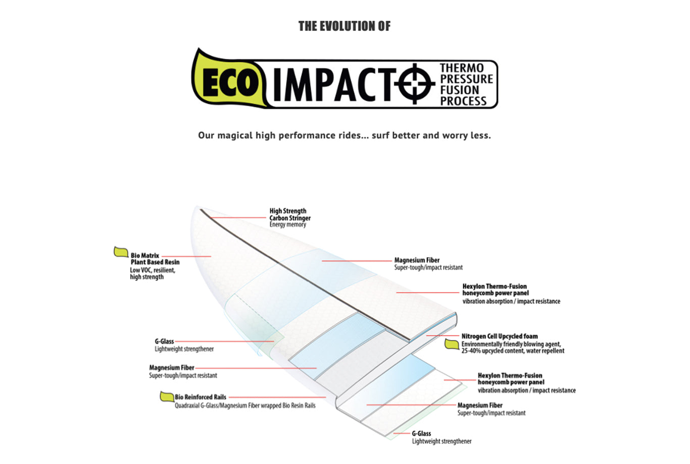 Mike Olson and our hands on craftsperson crew are constantly experimenting and working to improve our process and materials. The latest incarnation of our original ecoIMPACTO construction incorporates a new improved formula of our foam and refinements to our process that reduce weight and improve performance while retaining that “Dang Difficult to Ding” durability that relaxes your lifestyle, makes Lib Techs the best travel boards in the world and hold their value over time.