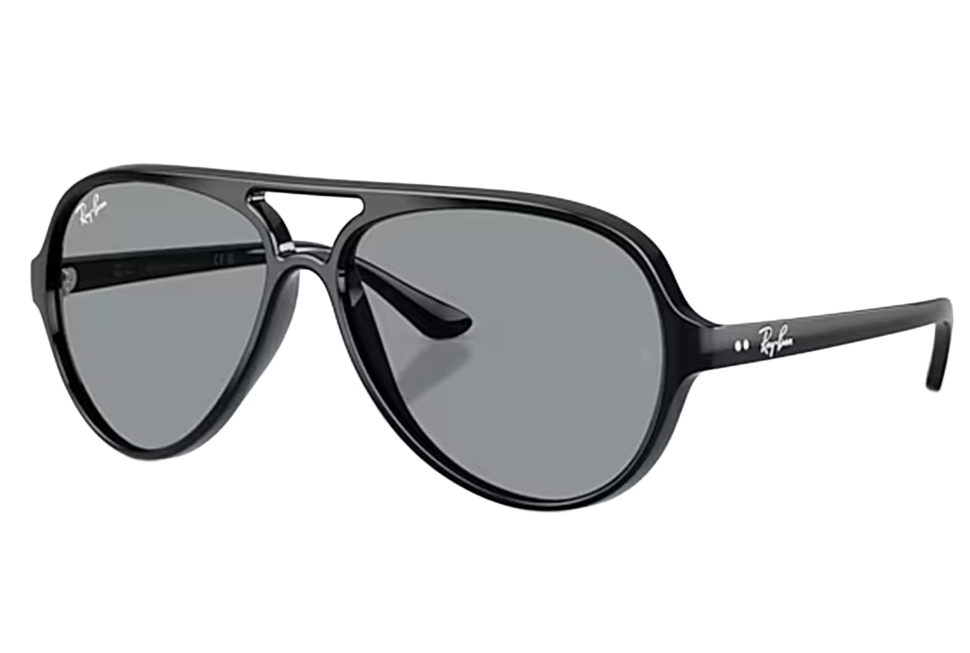 The Cats 5000 Classic blends timeless Ray-Ban style with a fresh twist on the iconic pilot shape. Crafted with durable nylon and propionate frames, these black sunglasses feature sleek coloring for bold, clean lines. The solid grey lenses offer advanced UVA/UVB protection while the double bridge adds an effortless edge. Designed for those who embrace iconic design with a modern interpretation, these Ray-Ban sunglasses are a perfect choice.
