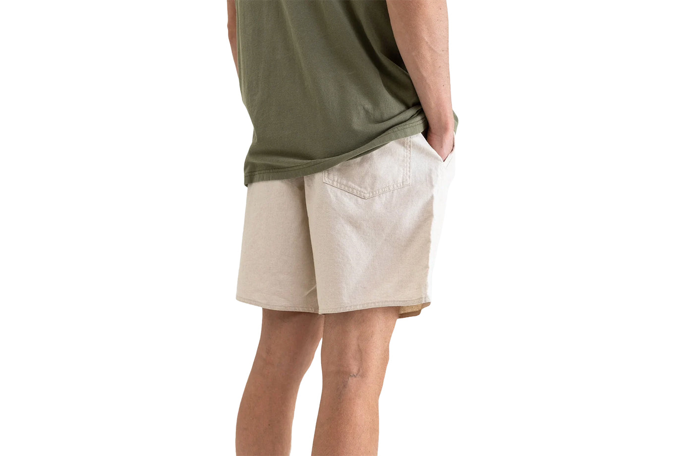 The Classic Linen Jam is a relaxed elastic waist short crafted in durable linen cotton blend mid-weight fabric, this style fits 17" above the knee and features side pockets and a back patch pocket, including an elastic waist with an adjustable drawcord, designed for everyday comfort and wear.