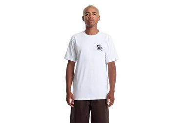 The Aura S/S Tee keeps it simple where it counts. This classic-fit white tee is cut in 100% cotton with a soft-hand screen print that feels broken-in from day one. A crew neck with self neck tape and a tagless, screen-printed label keep comfort dialed, all day.