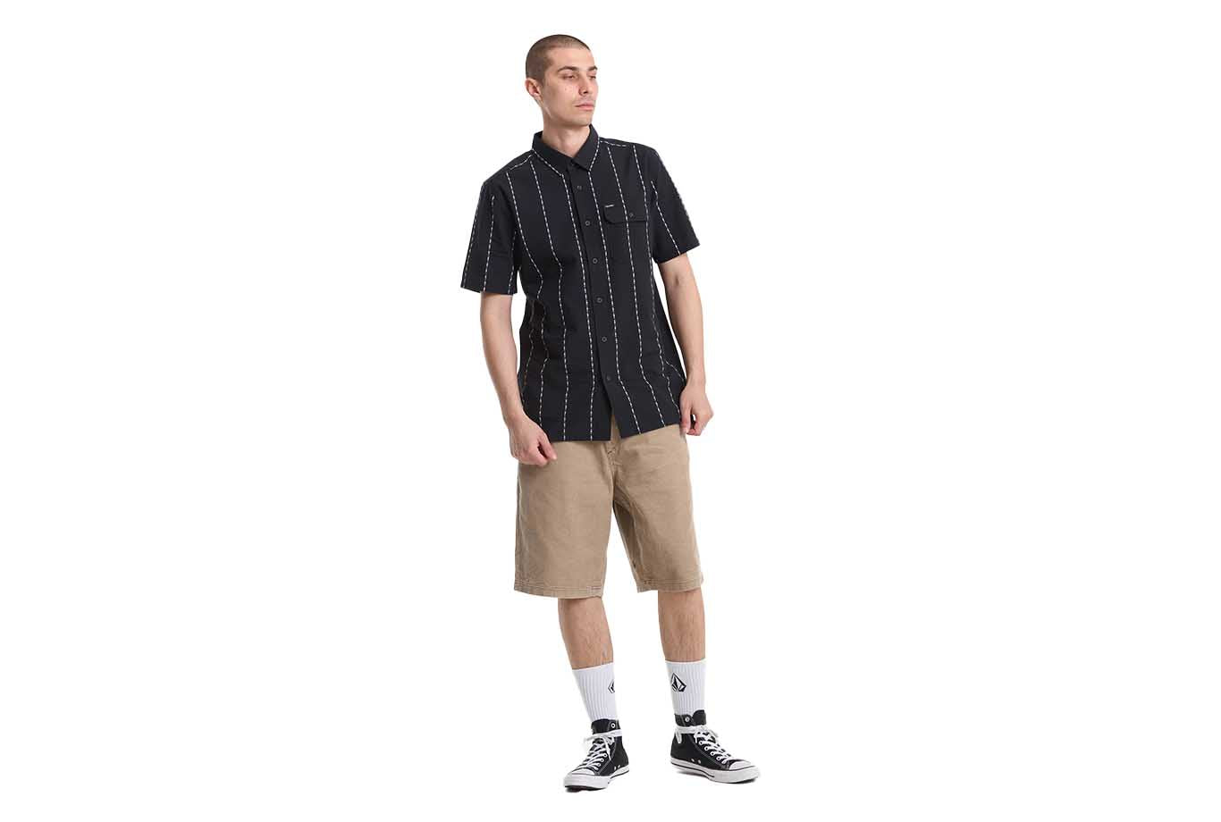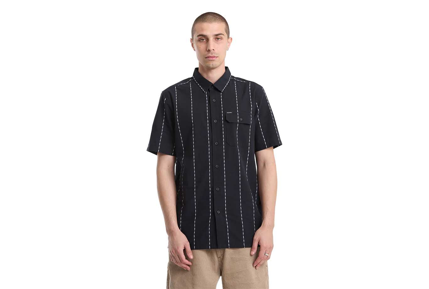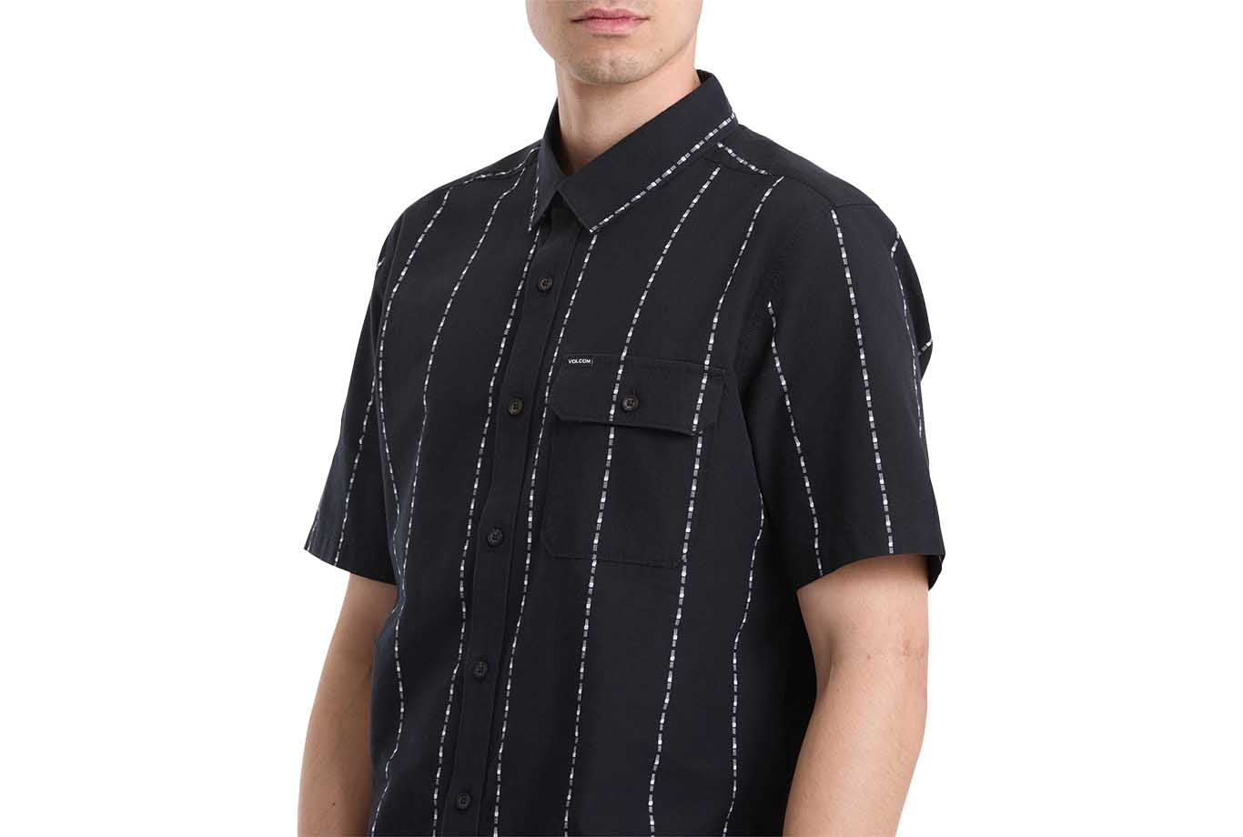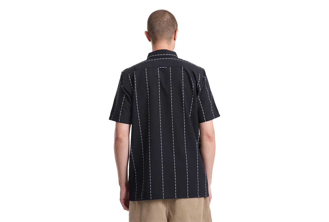 Crisp jacquard stripes meet a classic fit in the Whitworth short sleeve, cut from 100% cotton for all-day comfort. The Gloss Black colorway keeps it stealth, while a left chest pocket with flap, custom logo buttons, and a woven label handle the details. Clean, confident, and built for whatever the day throws down.