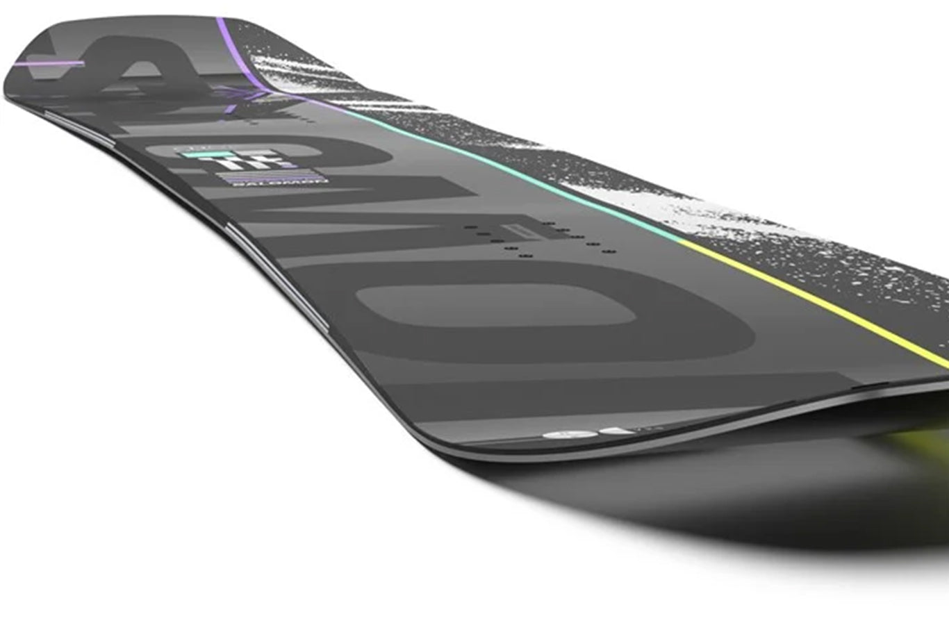 Quad Camber – The aggressive characteristics of camber blended with rocker on the tip and tail to make the board playful and agile in pow. Quad Camber built with a blend of different radiuses and is more forgiving than a regular camber but maintains the reactivity and pop.