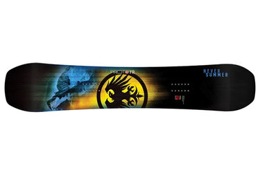 R.I.P Edge-Hold Technology – Never Summer's R.I.P. (Rocker Integrated Performance) Edge Hold Technology enhances grip and stability across various conditions. This configuration allows for smooth turn initiation, a playful and forgiving feel, and explosive pop, making it suitable for riders who want a board that excels in diverse terrains and riding styles