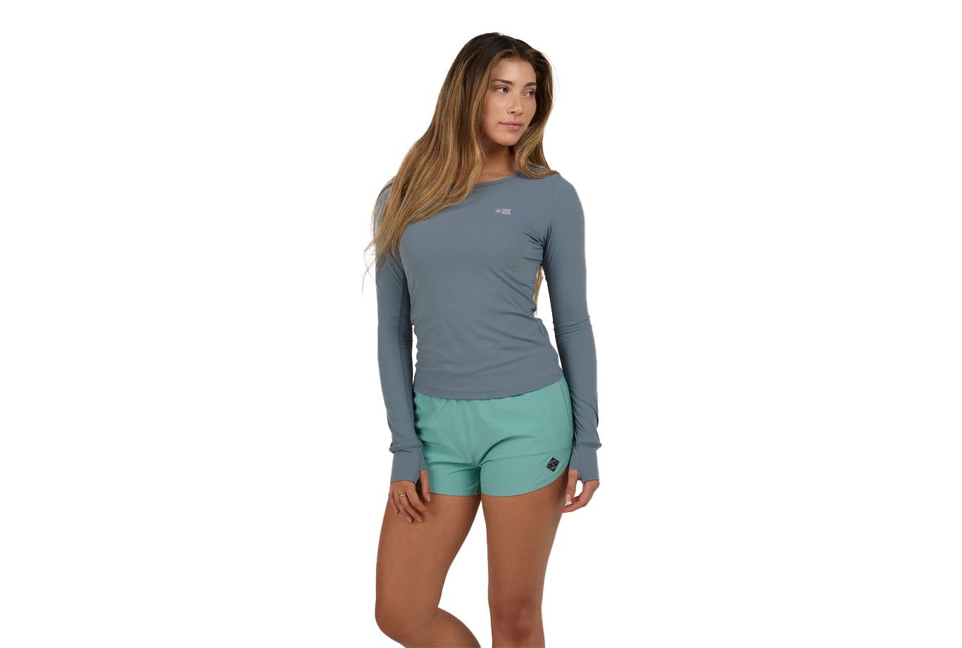 - Fitted long sleeve rashguard with UPF 50+ sun protection