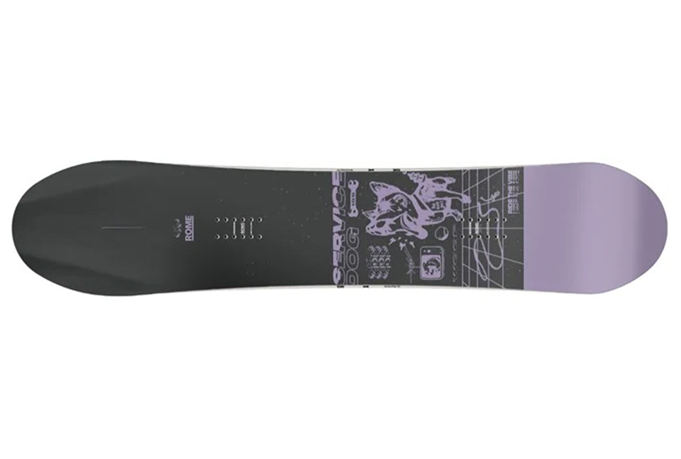 Get excited, the Rome Service Dog Snowboard is redesigned as a volume-shifted all-mountain party board built to turn the whole mountain into your personal playground. With a wide, compact shape, 3D nose for smooth float, and a directional Double Kick tail, it’s designed to be ridden shorter than usual and is as confident slashing pow as it is ripping groomers and side hits. This board is stable in all conditions and thrives on creativity, letting you ride fast, loose, and full of style. Bring the fun, bring the party—the Service Dog is here for good times only.