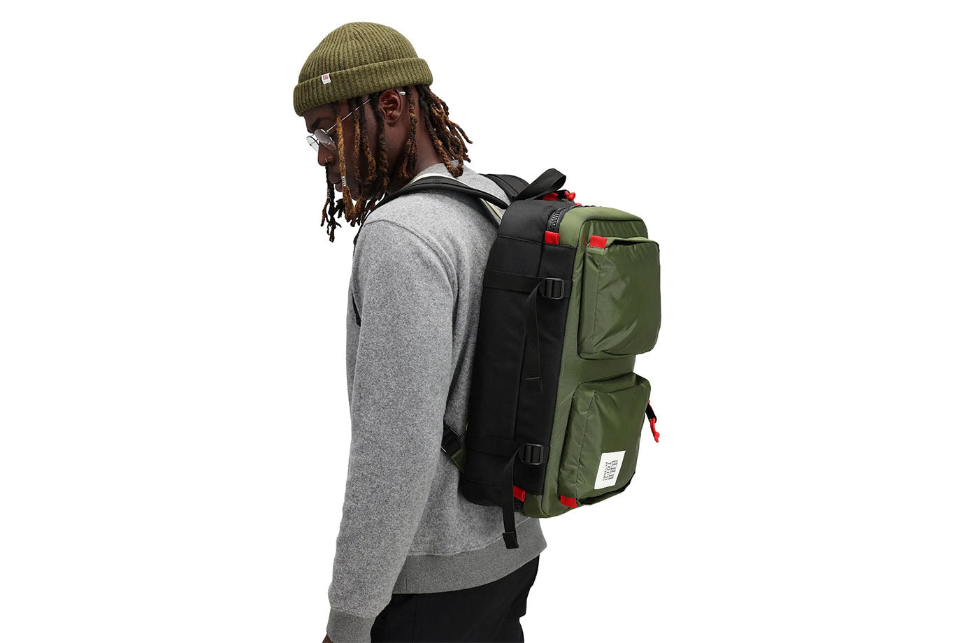 Materials: 400D recycled nylon, 210D recycled nylon pack cloth liner, 1680D recycled ballistic nylon base