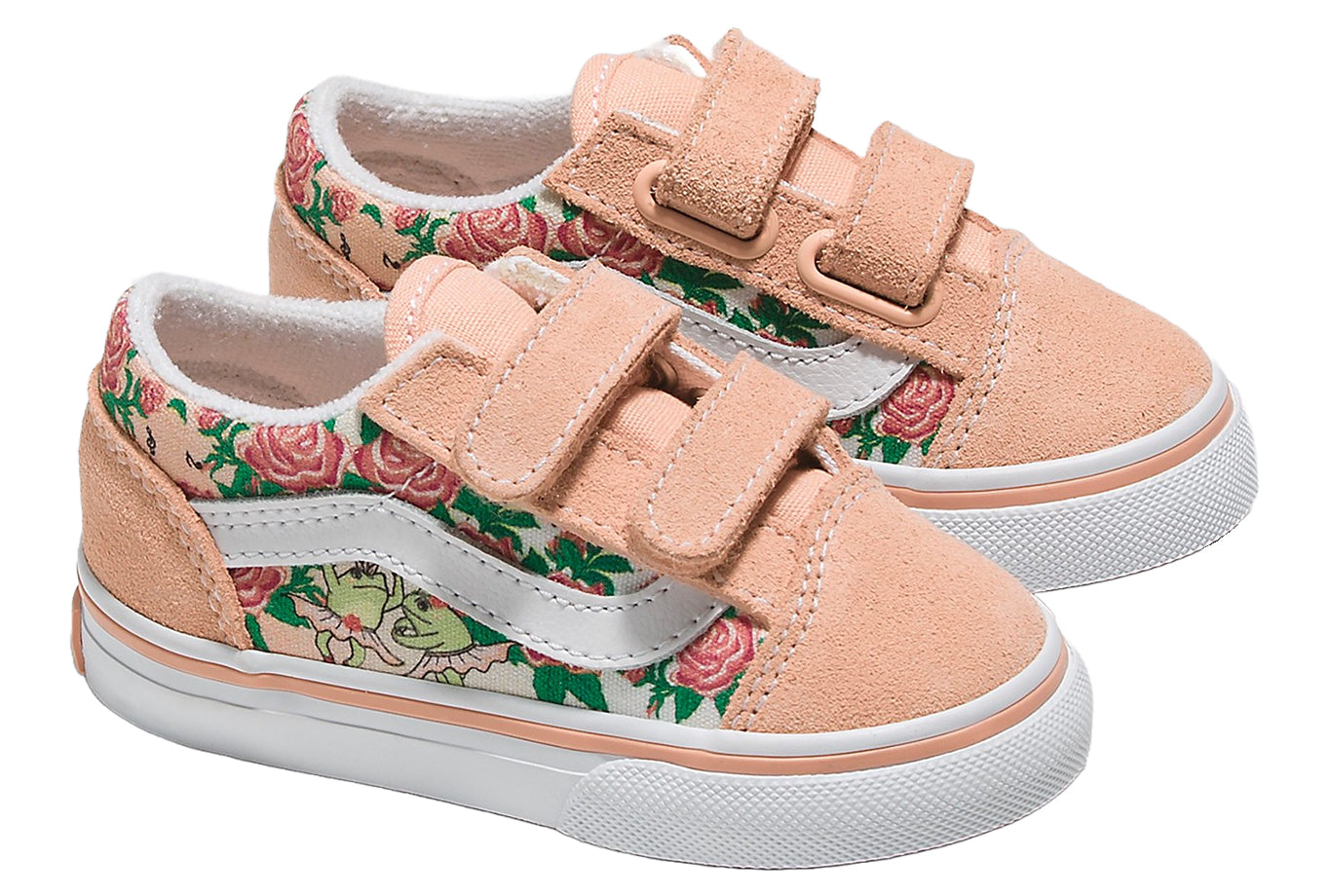The Toddler Frog Frolic Old Skool V reimagines our iconic sidestripe shoe by swapping traditional laces for double hook-and-loop closures. Featuring sturdy suede and textile uppers with a fun ballerina frog print, this low top style maintains its classic appeal while providing an easy, secure fit that will keep your little one comfortable all day. The Toddler Old Skool V also includes reinforced toecaps, supportive padded collars, and signature rubber waffle outsoles. • Vans’ iconic low top, sidestripe shoe made for toddlers • Double hook-and-loop closures • Suede and textile uppers • Floral frog print • Reinforced toe caps • Supportive padded collars • Signature rubber waffle outsoles