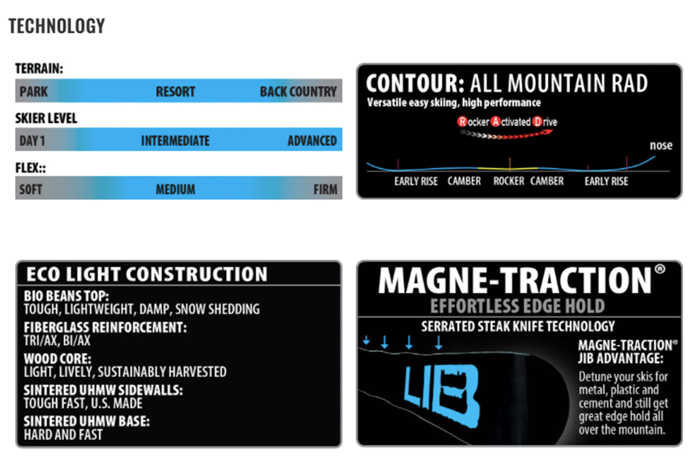 All new R.A.D. Series all terrain everywhere ski featuring easy skiing hard carving pow floating Rocker Assisted Drive (R.A.D.) technology. R.A.D. tech incorporates a mild reverse camber under foot bringing new levels of pressure distribution efficiency, effortless initiation, powerful carving, added life and oat to the ski. R.A.D. technology combined with a mild early rise tip make this series radically high tech, radically high performance, radically fun and amazingly easy to ski... new technology is RAD!