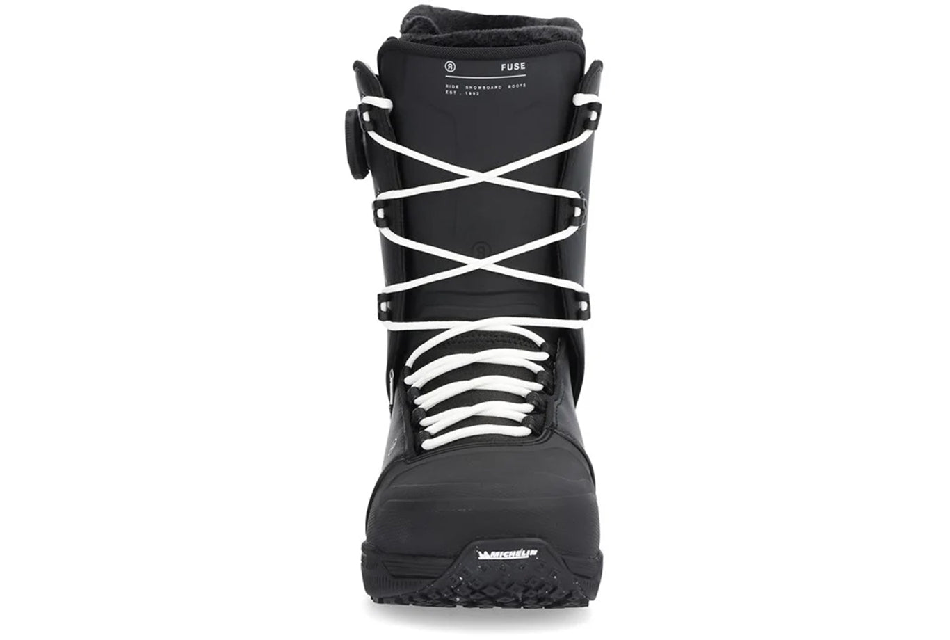 Are your boots clapped out and softer than a wet noodle? Slip the Ride Fuse Snowboard Boots on to reignite your ride. They're stiffer than a dive bar martini and built tough to hold up to the daily grind of serious riders who demand the best from their gear. Flex Slime tongues, dual density TPU heel counters and Fiberlite soles help dampen big hits and everyday chatter, making the Fuse a great option for all mountain freestyle rippers who prefer traditional laces and a powerful flex.