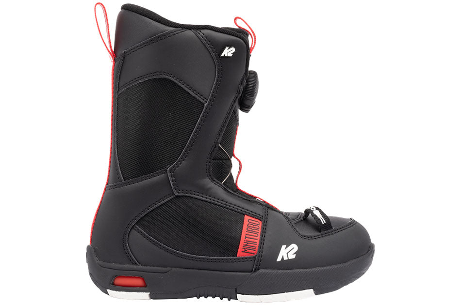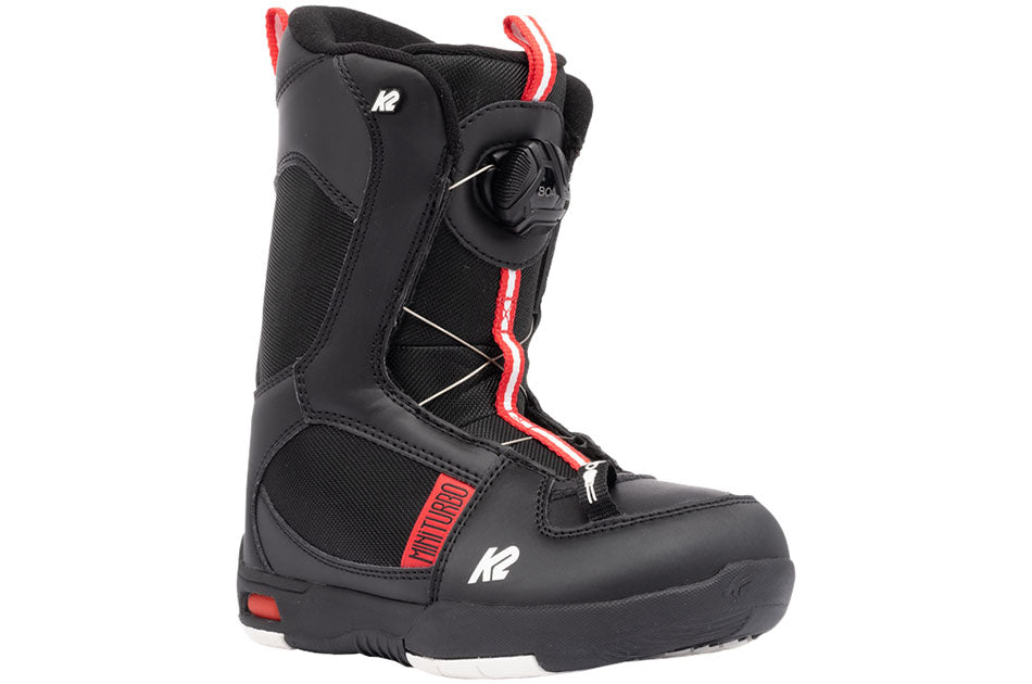 The K2 Mini Turbo Snowboard Boots will give your grom a leg up on the competition with their excellent fit and convenient Youth Boa® closure system (kids love Boa® dials, and so will you). Not only that, K2's Grows-A-Long shim system makes it simple to adjust the length of the boot for growing feet, even mid-season.