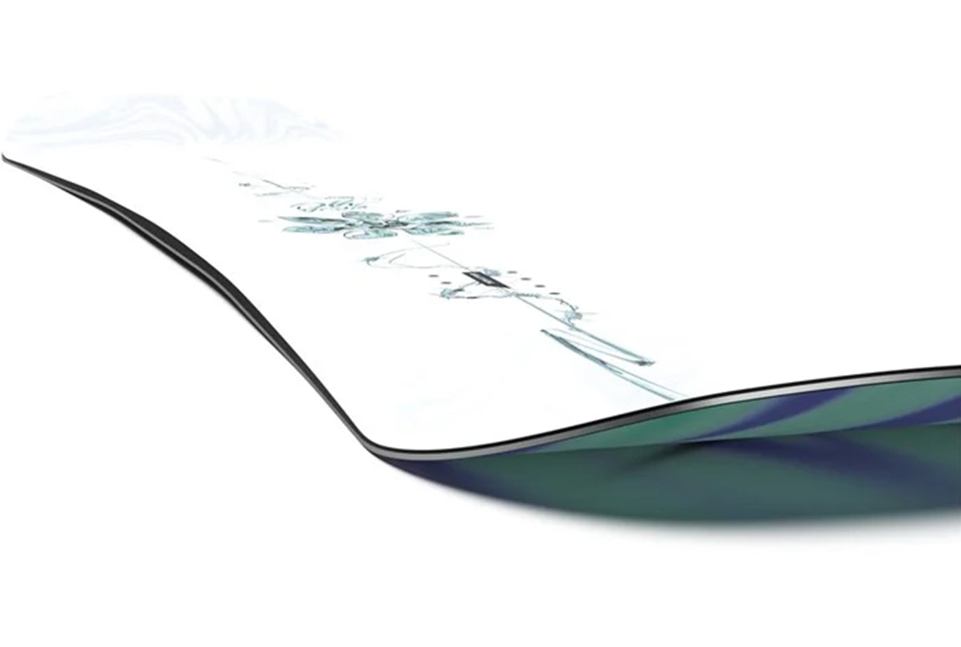Rock Out Camber – Flat between your bindings for stability, camber near the feet for response and a rocker on the tip/tail for pressability.