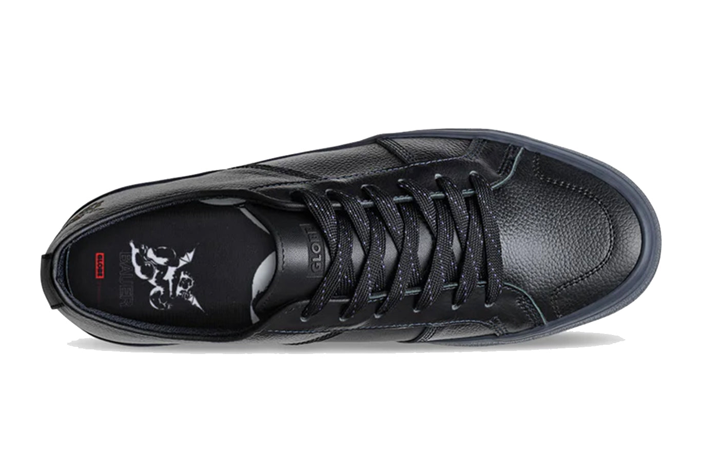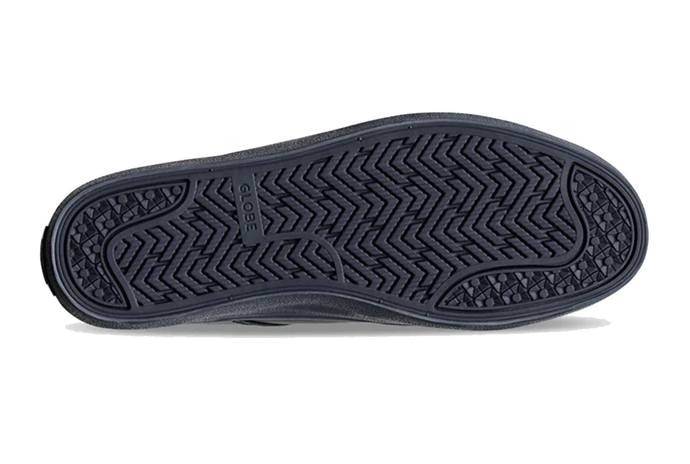 The Surplus in Black/Blue/Bauer, a utilitarian vulcanized skate silhouette featuring Globe’s Shockbed™ insole for impact control and Super-V™ outsole for enhanced grip and board feel. Tested and developed for skateboarding by our team, this evergreen staple is essential. With a "Scratch Off" Leather upper that changes colour as it wears.
