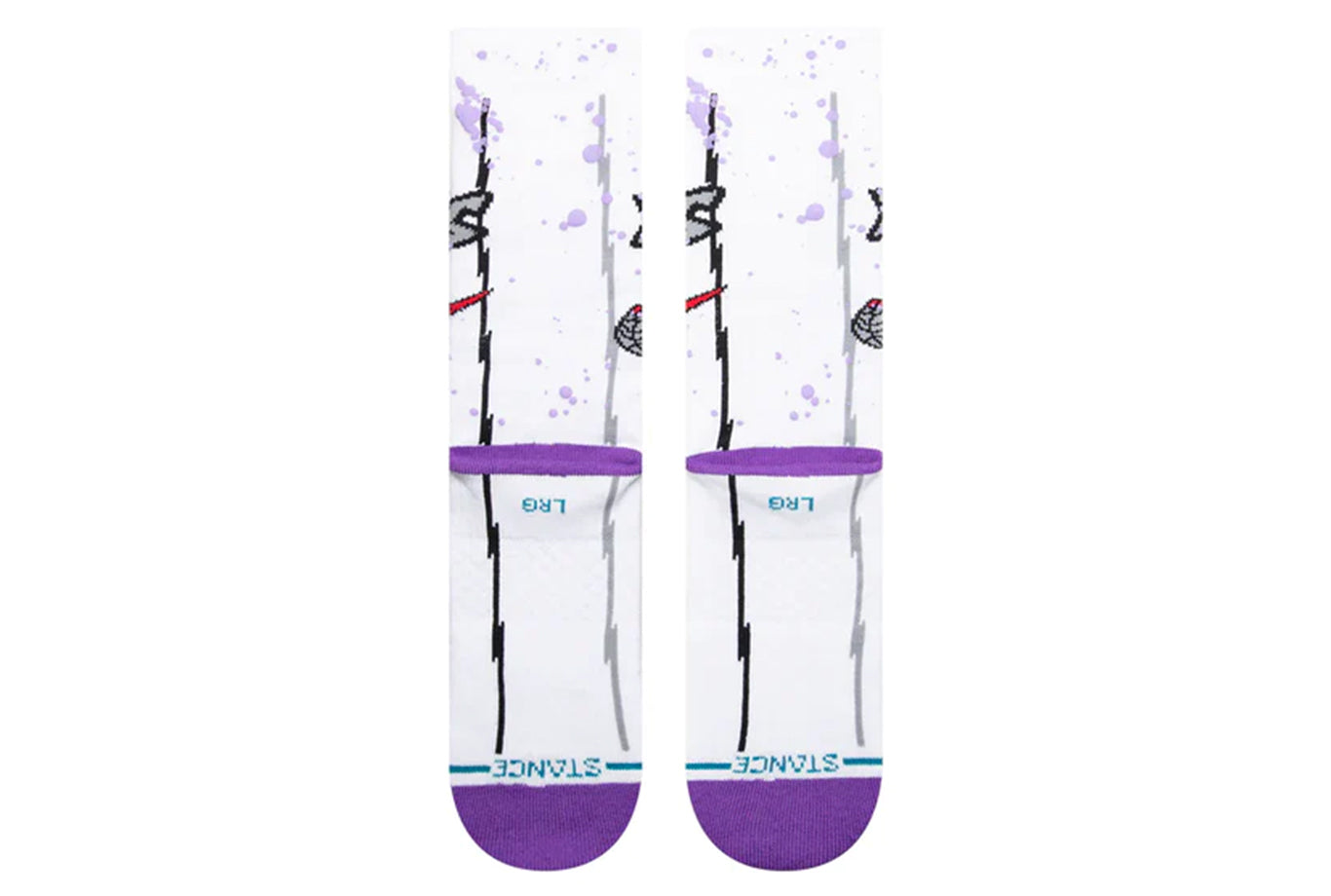 The Stance - NBA Overspray TOR socks are designed for optimal comfort and performance. Crafted with breathable spandex and polyester fabric, these socks are designed to provide superior fit and maximum cushion while keeping your feet cool and dry. With the NBA logo embroidered at the ankle, show your team pride with every stride.