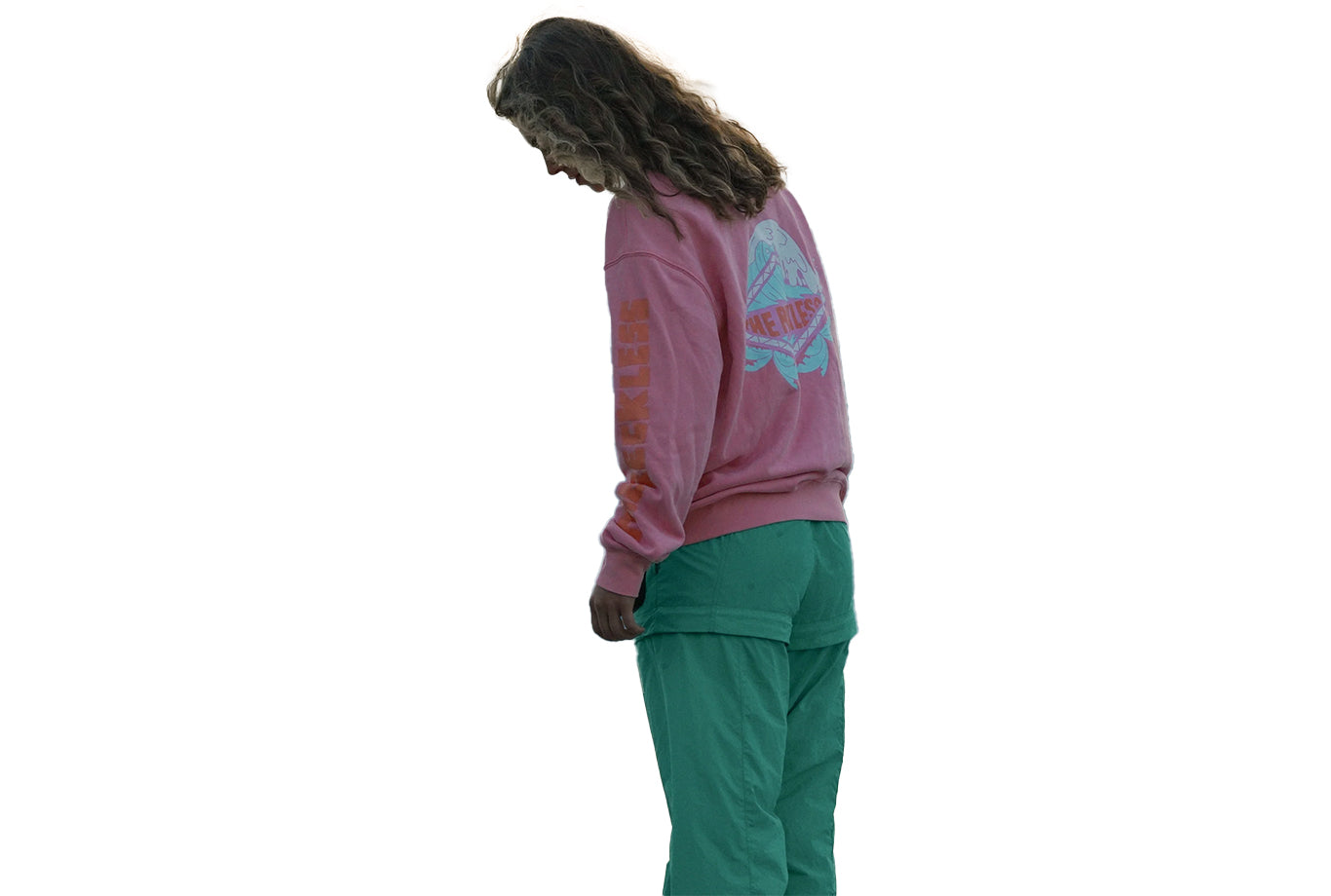 - Color: Washed Pink with a print to the front, on the left sleeve and to the back