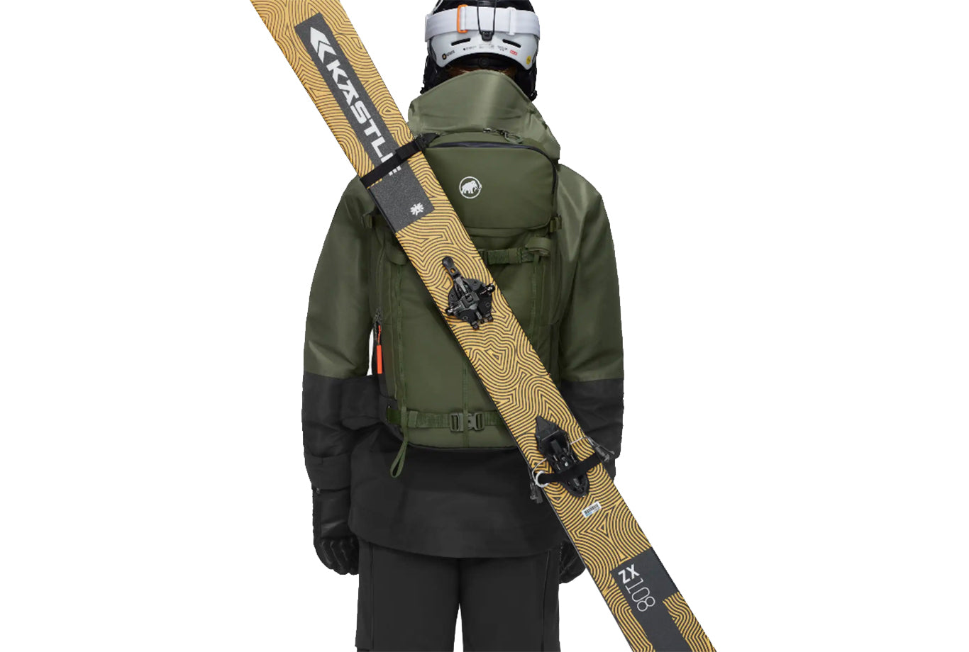 The legendary Nirvana is our true snow sports pack, optimized for freeriding and lift-supported ski touring. Versatile and well-equipped with specialized winter features, the Nirvana 35 is the ideal partner for a wide range of plans. Organize and stow all your gear with easy access to the main compartment through the 270° zippered back panel. A separate avalanche equipment compartment ensures you are always prepared, while a dedicated internal sleeve makes the pack compatible with the Mammut Back Protector. Skis and splitboards can be attached diagonally or A-frame style. An optimized carrying system provides maximum comfort and freedom of movement. The specially selected fabrics, including the extremely robust outer, are PFC-free and made from recycled materials.