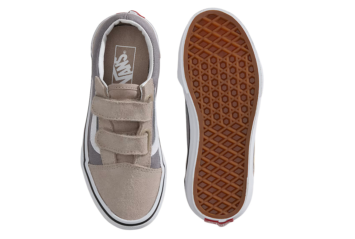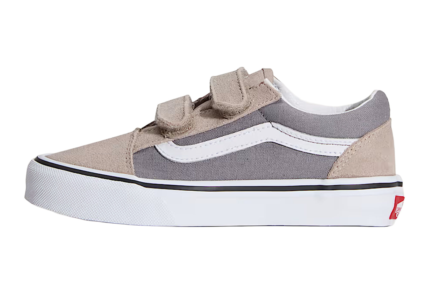 The Kids Old Skool V reimagines our iconic Sidestripe Shoes by swapping traditional laces for double hook-and-loop closures. Made with signature suede and canvas uppers, this low-top style maintains its classic appeal while providing an easy, secure fit that ensures all-day comfort.
