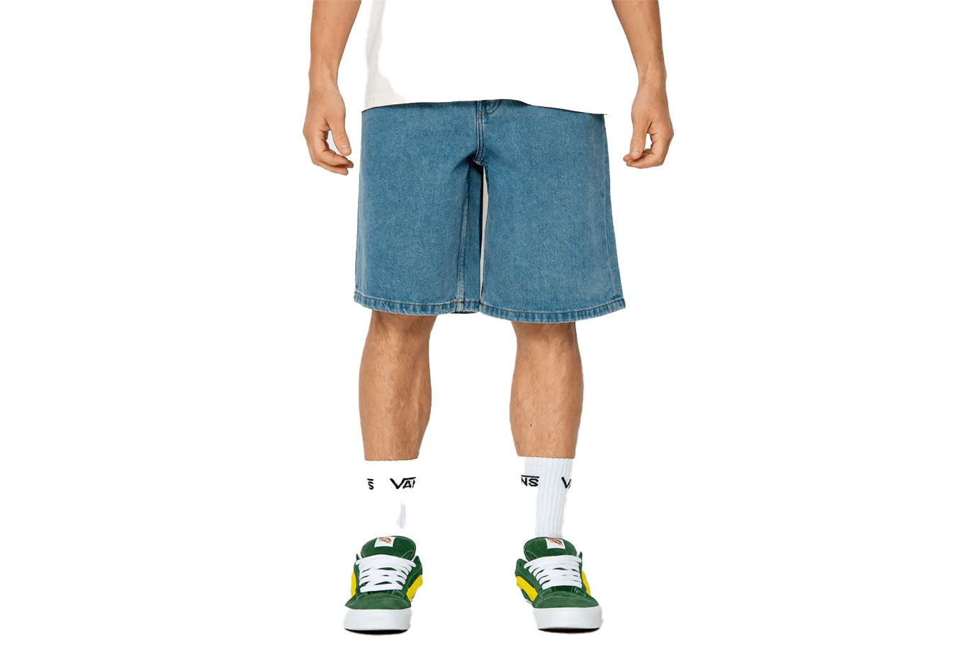 When your personal style is always on, you can never have an off session. The Check-5 Baggy Denim 23'' Shorts is a heavyweight cotton denim that features a classic 5-pocket styling ‚ two front, two rear, and coin pocket ‚ plus new details bring plenty of Off The Wall style to this classic baggy denim short, including the new V belt loop detail on the back waistband and checkerboard twill taping on internal fly facing.