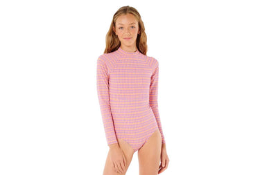 The Neon Isles Plaid Surfsuit combines classic style with performance, making it the perfect piece for young surfers who love the waves. Made from stretch seersucker fabric, this surfsuit provides comfort and flexibility with UPF 50+ sun protection for all-day coverage. Featuring a trendy plaid design, a back zip for easy entry, and a woven clamp for that added touch, this surfsuit keeps you protected and stylish from sunrise to sunset. Chlorine-friendly and built to last, it's your new go-to for beach-ready fun.