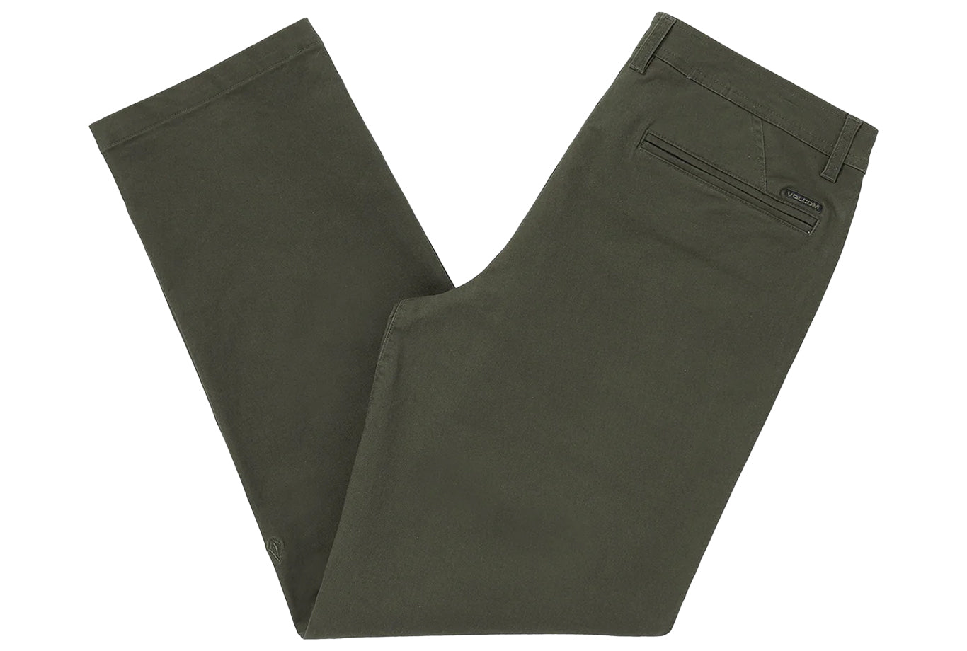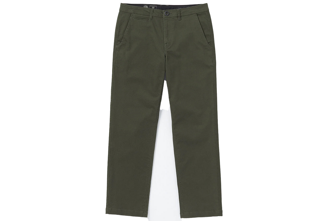 Celebrate one of Volcom's greatest transition skater, Grant Taylor, by skating a mile in his pants. An ideal pick for when you want to keep your look clean while griding the coping. A chino styled pant with vintage features like a fold back hollywood waistband, front slash hand pockets and coin pocket.