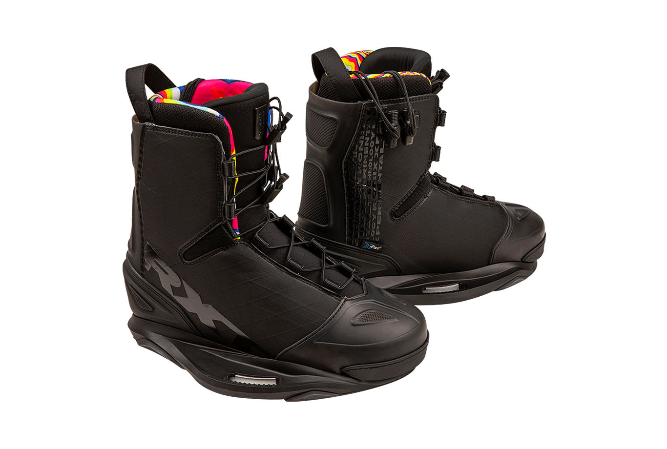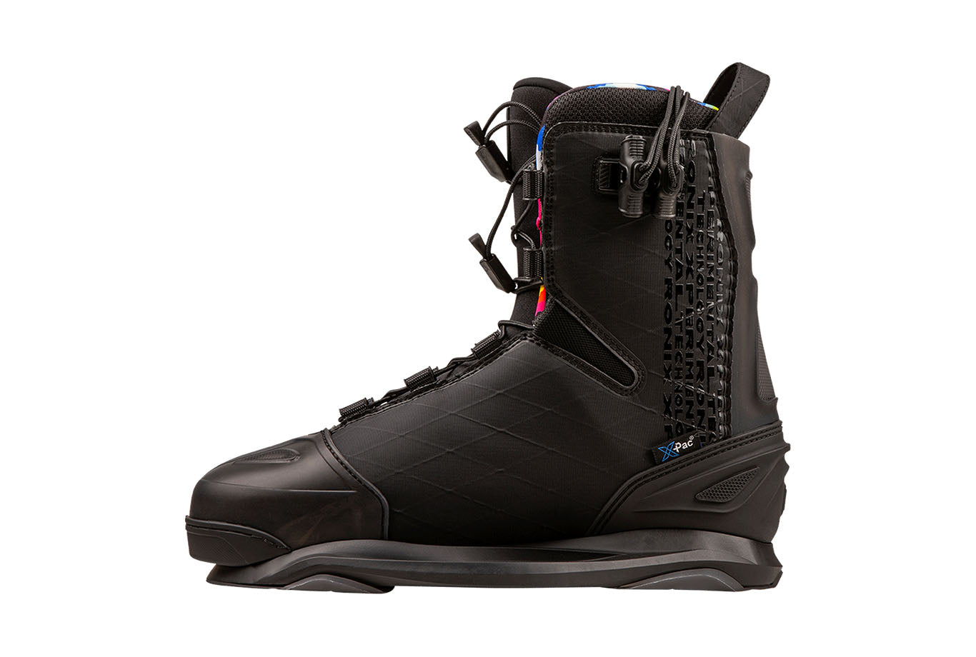 A brand-new, super clean RXT boot built with X-Pac sailcloth, giving the boot lightweight flexibility, without sacrificing durability. Highlighted by our proprietary Intuition+ heat moldable liner and enclosed around the heel and toe by FlexForm, this unique material compound creates ultimate flex, comfort, and longevity. Ronix Xperimental Technology has the perfect blend of a stealth midnight exterior and a vibrant kaleidoscope inside. Lightweight support for the rider that wants the most in side to side mobility without sacrificing heel hold down.