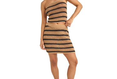 The Black Sol Stripe Knit Mini Skirt, crafted from a comfortable cotton-polyester blend, skims the body with a ribbed, elasticated waistband. Its knit stripe pattern mirrors the rhythmic waves, making it a versatile piece for drinks by the coast or vibrant catch-ups in the city