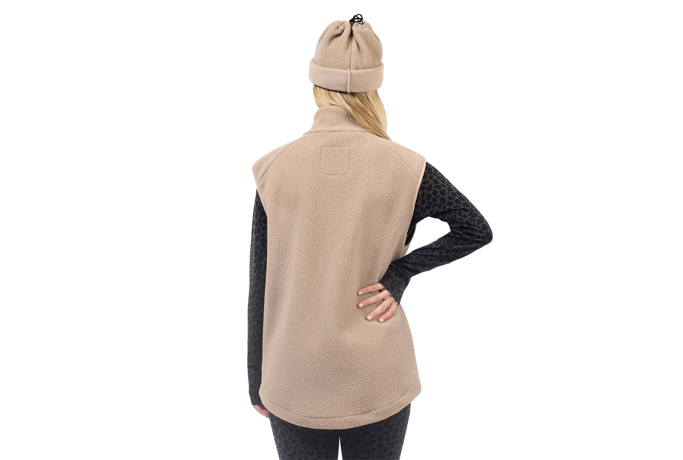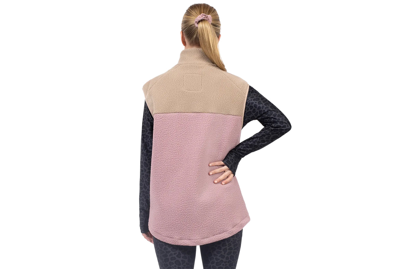 Infinite options on how to use and style this fleece vest, simply packed with multiFUNctionality. Thick and soft sherpa fleece in pink and beige, premium sized YKK® zipper on the front and regular YKK® zippers on the chest and side pockets. Dropped shoulders, straight waist and a high double layered collar.