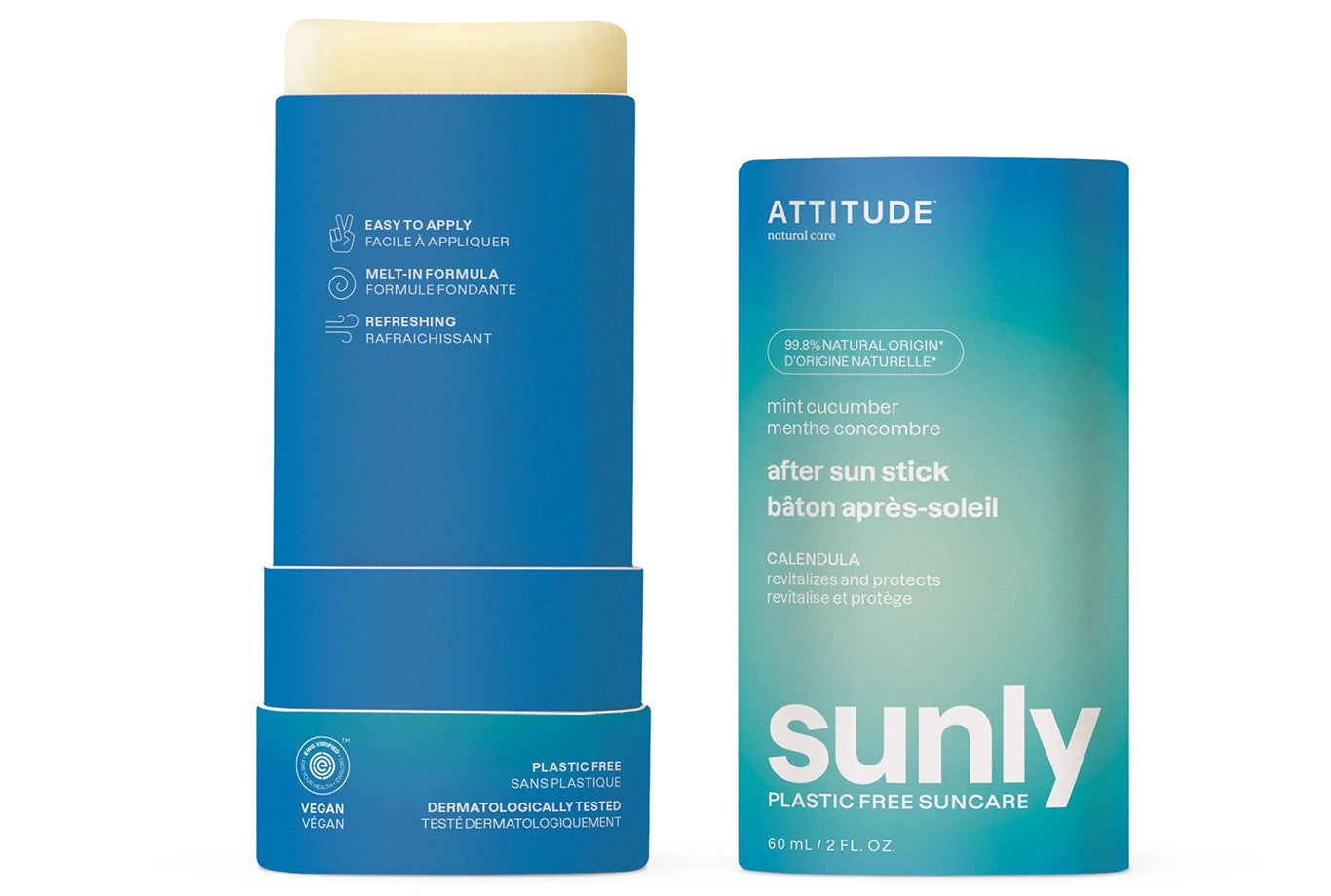 Formulated with naturally sourced ingredients, ATTITUDE™ after sun stick – mint and cucumber is easy to apply and helps refresh and soothe skin after a day of fun in the sun.
