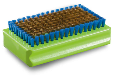 A tuning brush is a crucial part of regular base maintenance and conditioning. In brushing down your base before waxing to clean out debris, and brushing after waxing to bring back the structure of the base for an optimal ride, a good brush can be your skis or snowboard's best friend. Our Brass Brush is slightly larger than the standard, meaning more surface area to work with. The stiffer bristles of brass make for a much faster job than nylon, and work well with all waxes.