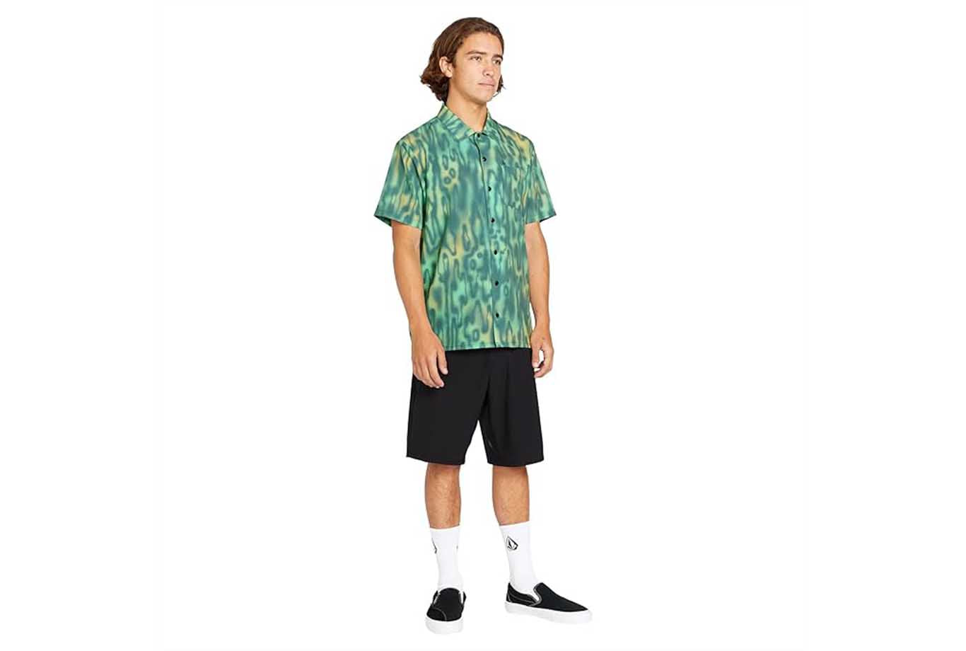 • Signature asymmetrical back single welt pocket, high density Volcom brand logo, Heathered body fabrication