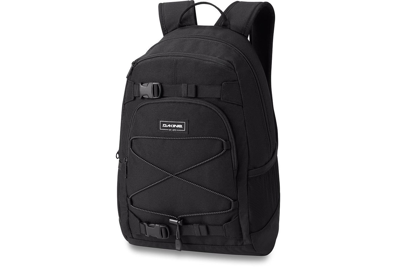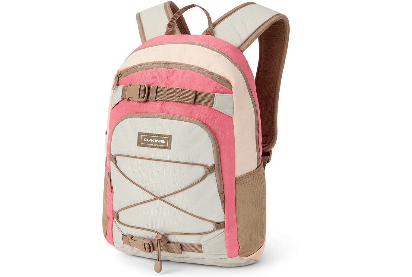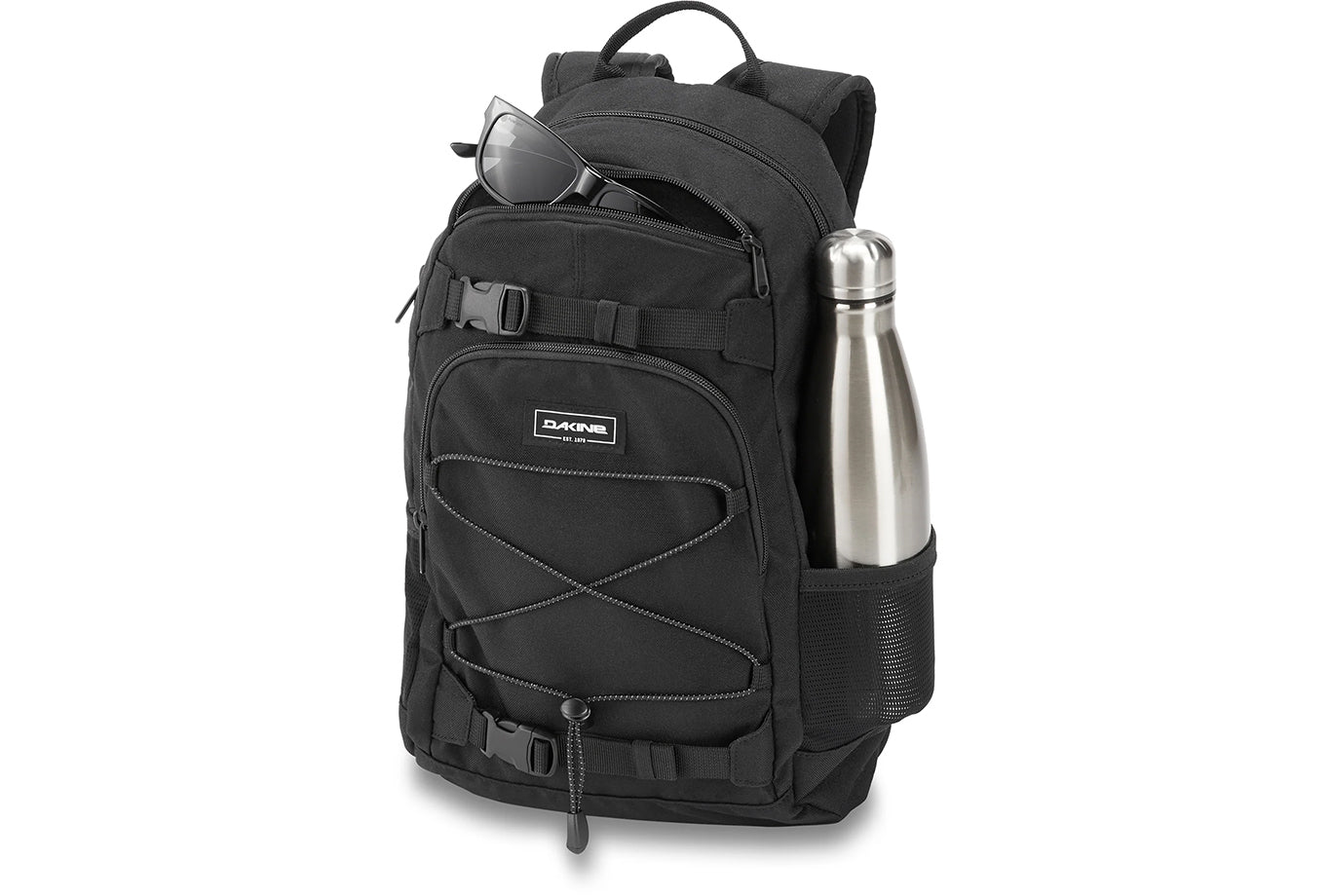 Get back to school in style with the Dakine Grom. This thoughtfully designed kids' sized backpack features a lower 13L (790 cubic inch) volume for lighter loads, plus safety features including reflective details and an easily accessed safety whistle on the adjustable sternum strap. An external bungee strap holds additional layers, while dual mesh side pockets hold water bottles, snacks, or other quick access items.