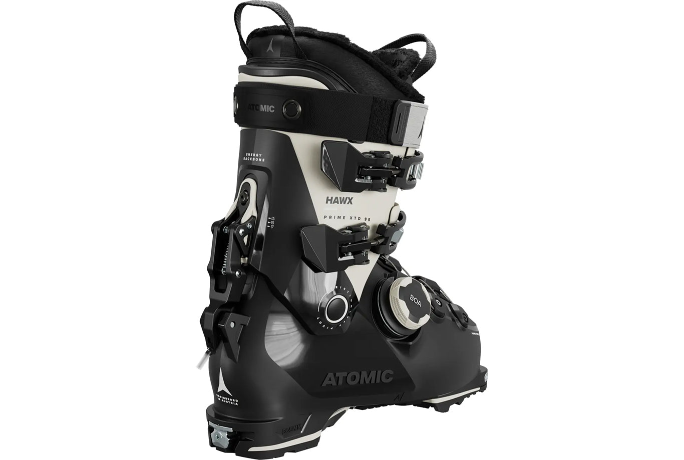 For women who ski inbounds and out, the Atomic Hawx Prime XTD 95 BOA W GW freeride touring boot is built with a medium flex and a mid-volume 100mm last fits medium-width feet. Built using next-gen Prolite, it’s got a low-profile shell with structural reinforcements in target areas for powerful downhill performance. The micro-adjustable BOA® Fit System wraps the shell around the lower foot for a secure, snug fit. A comfortable 3D Silver liner offers a highly anatomical, pre-shaped heel and ankle area. Customize shell, cuff and liner with in-store Memory Fit in minutes. The Adaptive Fit System (AFS) Cuff features a removeable cuff spoiler that increases the amount of tulip-shape and volume in the calf. Free/Lock 4.5 makes for an efficient ski-walk transition with adjustable forward lean and smooth cuff motion comes from 54° range of motion. A GripWalk Sole is compatible with MN, MNC and pin bindings. For those who need ski-touring capabilities in a crossover boot, this is it.
