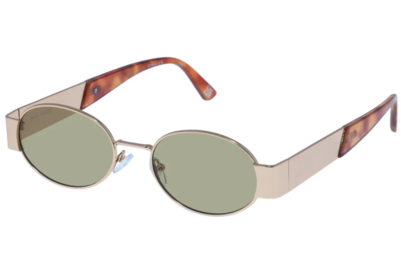 • Finished in a satin gold and vintage tort frame with khaki tint lenses.