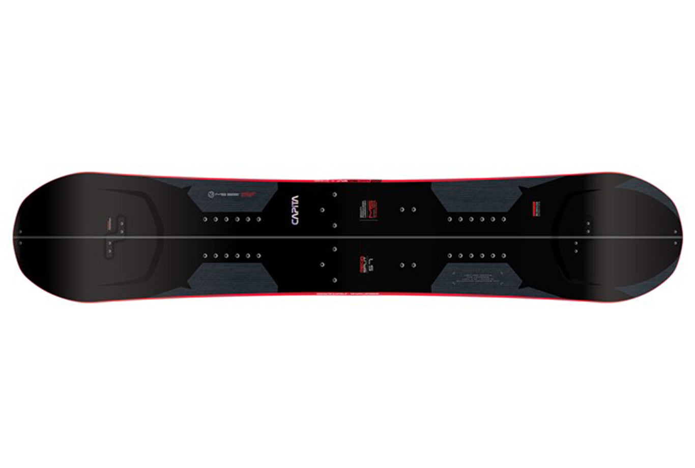 Resort V2 Directional + Flat Kick Tech – This revolutionary all-terrain shape provides the best of both worlds. It has a raised camber platform through the inserts to retain high-speed edge hold through variable terrain, elevated contact points to land and float in powder, and Flat Kick tip and tail arcs for faster, more aggressive transitions.