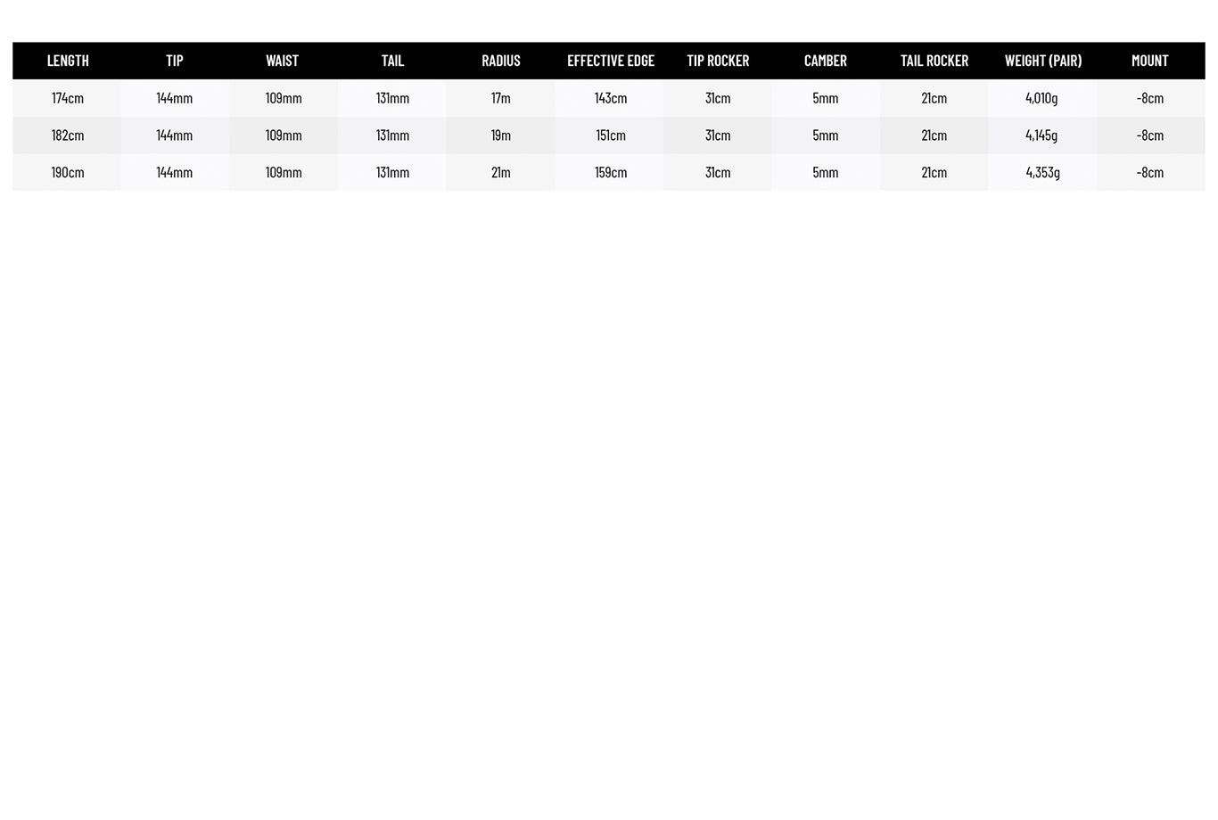 For the 23/24 season we have maintained the modified shape of the Pioneer 109 of last season, with a reduced rocker in the tail to give the Pioneer more directional aesthetic and better acceleration out of your turn.Its tapered shape combined with 5mm of camber underfoot and our Poplar Power Core makes the Pioneer 109 powerful, snappy, responsive, and stable at speed. The 109mm waist provides the loft needed to float in the deepest pow when Ullr drops his white goodness. If you are a hard-charging skier that is looking for a stiff but forgiving ski, the Pioneer 109 is the ski for you!