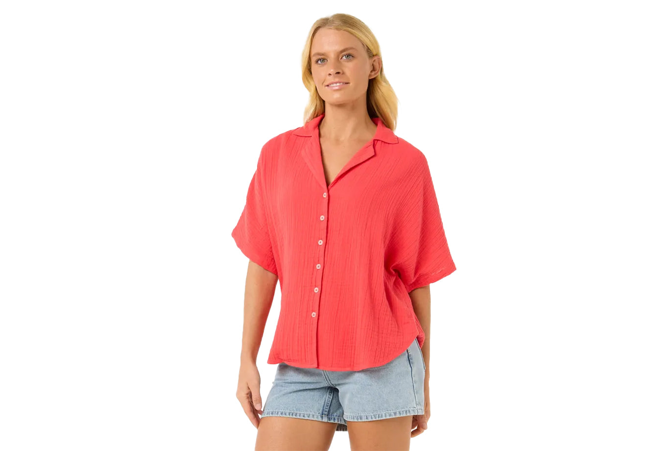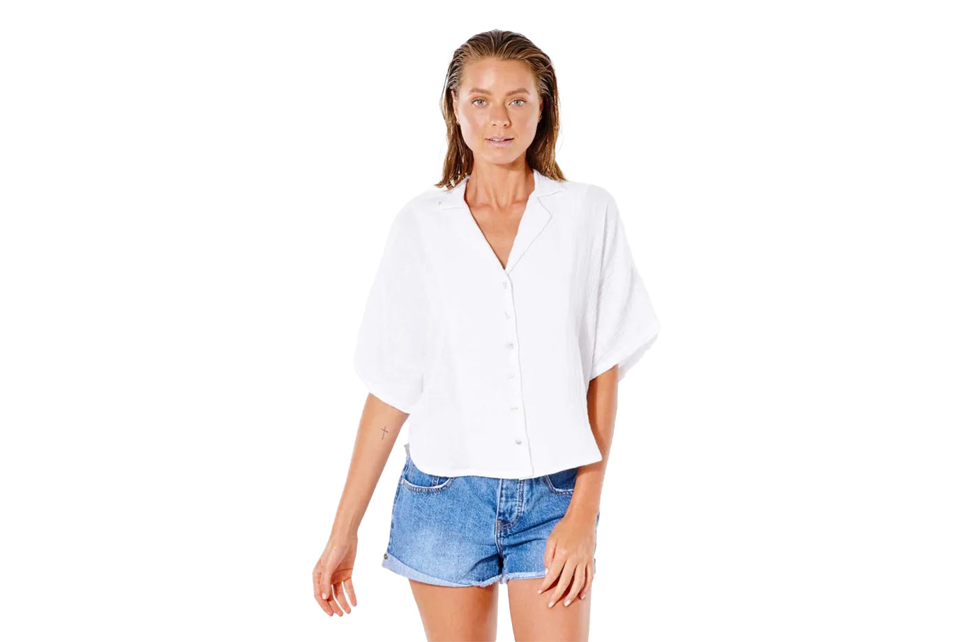 Dress in casual style with the Premium Surf Shirt Sleeve Shirt. Made from cotton double weave gauze fabric, this relaxed fit shirt offers both comfort and versatility. The garment wash adds a soft and worn-in feel, while the button-through design allows for easy on and off. Whether you're heading to the beach or running errands, this shirt is a stylish choice for a laid-back look.
