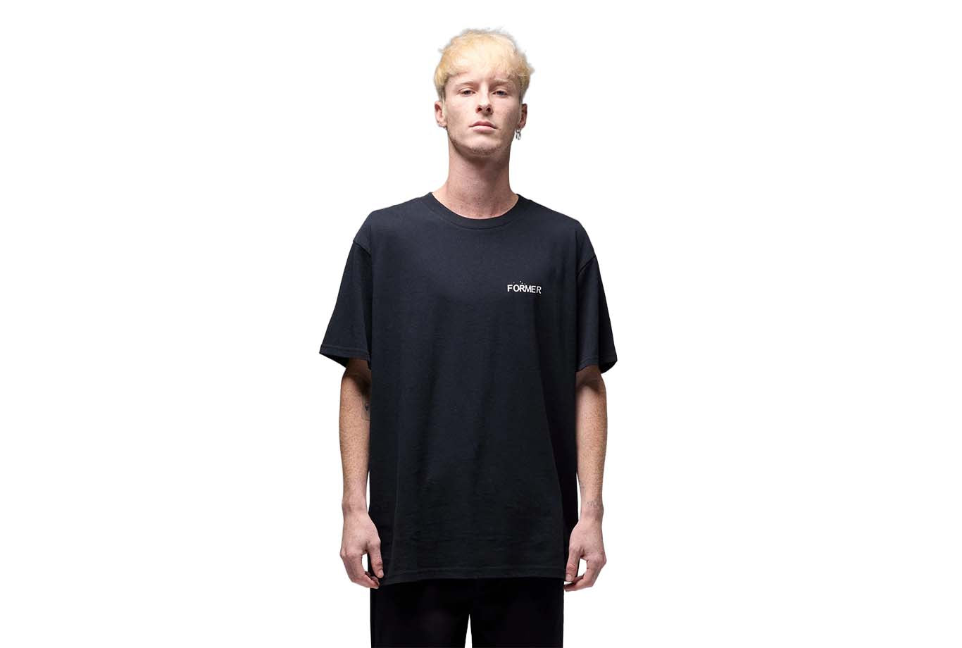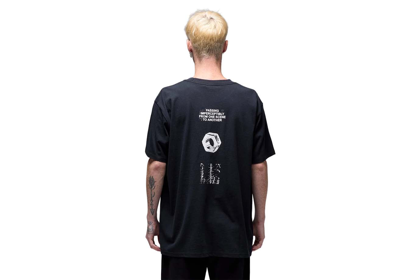 Designed in a premium 200GSM jersey cotton and delivered in our standard T-shirt block for a modern and comfortable fit. Featuring front and back graphics in a soft hand plastisol screen print on a solid black base color.