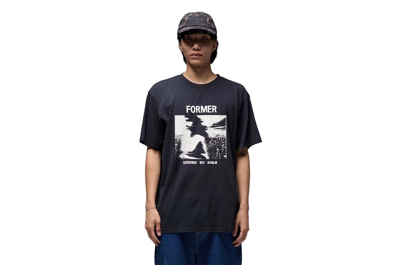 Designed in a premium 200GSM jersey cotton and delivered in our standard FORMER T-shirt block for a relaxed and comfortable fit. Featuring a seasonal front graphic in a soft hand plastisol screen print and delivered in our FORMER "Merch-Wash" for a vintage worn-in feel.